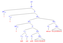 ![]() Simplified syntax tree adapted from Y. Huang (1994) example 6.51b, made with phpSyntaxTree |
