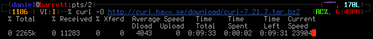 This will store the source code for www.example.com into a file named example.html. While retrieving output, cURL will display a progress bar showing how much of the output has downloaded. Note however that cURL does not show a progress bar when preparing to display the output in the terminal window, since a progress bar is likely to interfere with the display of the output.