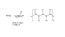Organosilanes are organic derivatives of silane containing at least one carbon to silane bond. Dehydrocoupling of organosilane is an efficient method to produce polysilanes. One of the most successful routes to polymerize phenylsilane is via through group 4 metallocene derivatives. However, they provide polymers with low molecular weight. Nevertheless, the catalytic route allows the possibility to control the polymer stereochemistry as well as introducing new functionality to the group. Polysilanes are an interesting class of radiation sensitive material. They absorb and illuminate under ultraviolet light. This is attributed to the low lying σ- σ * transitions from delocalized electronic states of conjugated silicone atoms of the polymer. The substituent and molecular weight of the polymer influences the electronic properties of polysilane.[14]