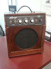 Simultaneously Gibson produced a line of Kalamazoo amplifiers, marketed primarily as budget model practice amps. The first amp introduced, the Model One, began production in 1965 along with the guitars. It was followed in 1966 by the Model Two. Both used vacuum tubes for preamplification, rectification, and output. Both had roughly a 5W output and a 10" Alnico speaker manufactured by Chicago Telephone Systems (CTS). Both models had volume and tone controls, but Model 2 added a tremolo knob, which set the tremolo frequency or switched it off; there was no tremolo depth control. The last of Models One and Two produced were given a brown, wooden look faceplate instead of the previous black panel, and are sometimes referred to as "brownface Zoo's" by Kalamazoo enthusiasts.[3] The circuitry in the Kalamazoo Model Two is similar to the Gibson GA-5T Skylark amplifier of the same time period, as well as the Sano-ette made by Sano Amplifiers of New Jersey.
