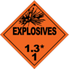 | Information on this graphic changes depending on which, "Division" of explosive is shipped. Explosive Dangerous Goods have compatibility group letters assigned to facilitate segregation during transport. The letters used range from A to S excluding the letters I, M, O, P, Q and R. The example above shows an explosive with a compatibility group "A" (shown as 1.1A). The actual letter shown would depend on the specific properties of the substance being transported.
