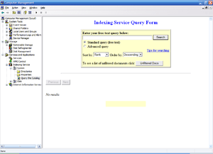 The Indexing Service Query Form, used to query Indexing Service catalogs, hosted in Microsoft Management Console.