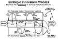 In the late 1980s, he continued to research how outstanding leaders and winning companies not only developed breakthrough strategies, but also how they successfully implemented them. He described this approach in his book, Corporate Imagination—Plus: Five Steps to Translating Innovative Strategies into Action, published in 1990 (Free Press /Simon & Schuster).[6] This book presented the core of his strategic innovation model that described how creative leaders push two extremes in their thinking—to be idealistic and confident on the positive extreme, and seek deep strategic insights and root causes on the negative extreme—depicting these two thinking modes, plus implementation, as two cycles of a sine wave.