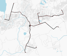 The Kryvyi Rih tramway network is part of the public transport system of Kryvyi Rih, city in Ukraine. The tram network serves as the backbone of the transit system, serving as part of the Kryvyi Rih Metrotram system.