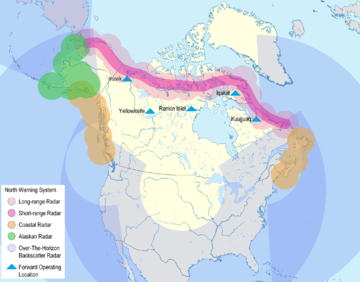 In 1989 NORAD operations expanded to cover counter-drug operations, e.g., tracking of small aircraft entering and operating within the United States and Canada.[31] DEW line sites were replaced between 1986 and 1995 by the North Warning System. The Cheyenne Mountain site was also upgraded, but none of the proposed OTH-B radars are currently in operation.