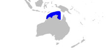The plain maskray inhabits the continental shelf of northern Australia from the Wellesley Islands in Queensland to the Bonaparte Archipelago in Western Australia, including the Gulf of Carpentaria and the Timor and Arafura Seas.[2] There are unsubstantiated reports that its range extends to southern Papua New Guinea. It is the least common of the several maskray species native to the region.[1] This species is a bottom-dweller that prefers habitats with fine sediment. It has been recorded from between 12 and 62 m (39 and 203 ft) deep, and tends to be found farther away from shore than other maskrays in its range.[1]