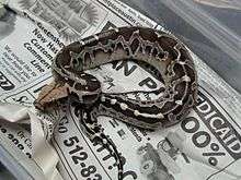 The Borneo python (Python breitensteini) is a species of non venomous python[3] endemic to the island of Borneo.[1][2] Other common names include Bornean short python[4] and Borneo short-tailed python.[1]