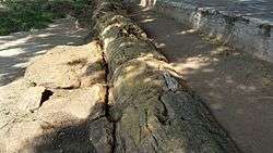 This fossil is of a conifer, measures around 18 meters long and a geological treasure.[1] Similar fossilized tree trunks have been found in nearby Varagur, Anaipadi, Alundalippur, and Saradamangalam,[2] all located within a 10 km radius of Sathanur.