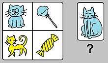 In the Dimensional Change Card Sorting Task (DCCS), children are initially asked to sort cards by a single dimension (such as color), and are subsequently required to alter their strategy to sort cards based on a second dimension (such as shape).[18] Typically, three-year-old children are able to sort cards based on a single dimension, but are unable to switch to sort the cards based on a second dimension. However, five-year-old children are able to sort cards based on one dimension and can then switch to sorting cards on a second dimension.[17][19]