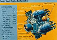 After the third manned mission to Skylab, plans were made to boost the station into a higher orbit to extend its service life or to de-orbit it into a remote ocean area.[1] A remotely controlled booster rocket was to be carried up in the Space Shuttle's third mission. Astronaut Jack R. Lousma described the remote booster as "as big as a truck" and requiring a control system able to match the circular motion of the Skylab docking port.[2]