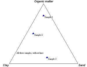 | Sample 3 | 10% | 40% | 50% | This sample has the same proportion of clay as in Sample 2 does, but because it has a smaller proportion of organic matter, the proportion of sand must be larger, because all samples' proportions must sum to 100%. |