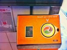 The go card is an electronic smartcard ticketing system developed by Cubic Corporation and currently used on the TransLink public transport network in South East Queensland. To use the go card users hold the card less than 10 cm away from the reader to "touch on" before starting a journey, and must do the same to "touch off" the service at the end of the journey. The cost of each journey is deducted from the go card balance.