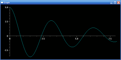 funct1.plot(pos=(x,5.*cos(2.*x)*exp(-0.2*x))) # plot