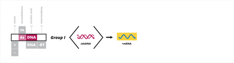 - I: dsDNA viruses (e.g. Adenoviruses, Herpesviruses, Poxviruses)