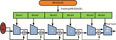 - For example, let's say the message to be hashed is "HashInput" and the block size of the compression function is 8 bytes (64 bits). So we get two blocks looking like this: